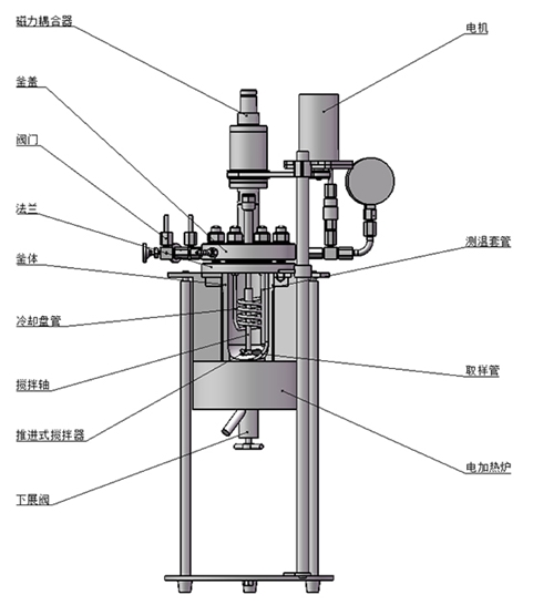 該結(jié)構(gòu)為環(huán)形磁力密封裝置,依靠?jī)山M強(qiáng)力磁鋼異極相吸的原理通過磁場(chǎng)穿透密封罩體來實(shí)現(xiàn)力矩的無接觸式傳遞,由于電機(jī)經(jīng)過皮帶二級(jí)減速,故而其攪拌特點(diǎn)是大轉(zhuǎn)矩低轉(zhuǎn)速(≤750r/min),適合攪拌中高粘度(cp≥5000mpa.s)或固體顆粒含量較多的反應(yīng)物料介質(zhì)體系。